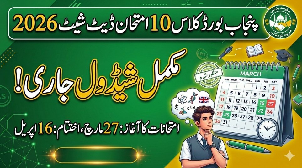 The Punjab boards have officially released the Class 9 annual examination date sheet 2026, confirming a province-wide, uniform schedule for all districts. According to the official timetable, Class 9 exams 2026 Punjab will begin in April and continue until early May, with morning and evening sessions. Morning exams start at 9:00 AM, while evening papers … Read more